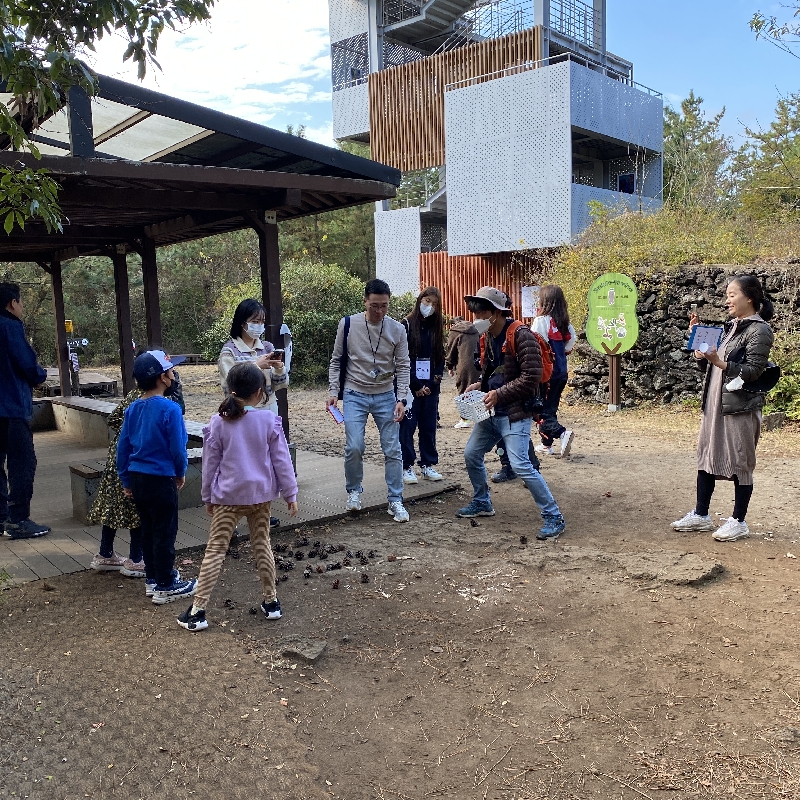 # 11월의 화창한 날 # 곶자왈이란? # 솔방울 던지기, 도꼬마리 과녁 맞히기, 전망대 도전 등 미션 수행 |