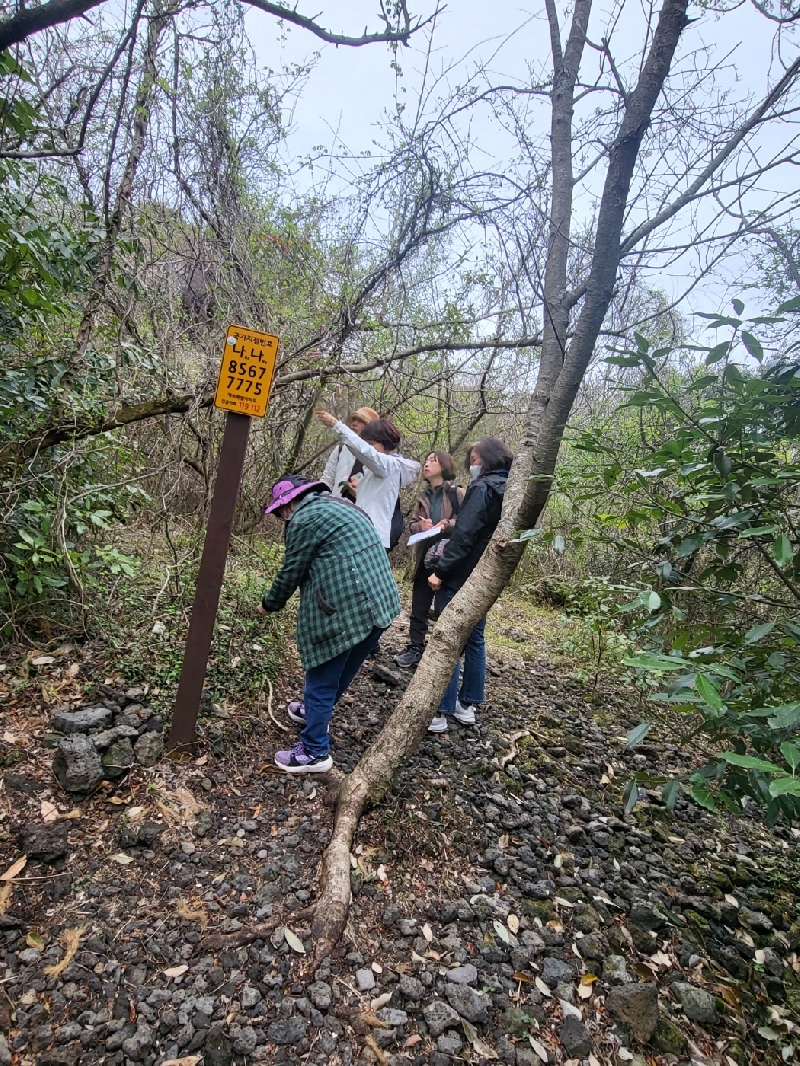 # 오리엔테이션과 함께 곶자왈 수종의 꽃, 열매 모니터링 # 3월에 피는 꽃, 잎, 새순 관찰 # 청미래덩굴 꽃봉오리, 으름덩굴 꽃봉오리, 탱자나무 새순 |