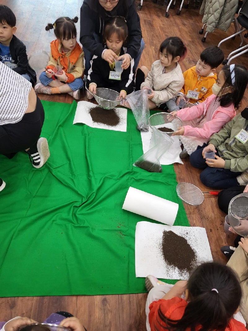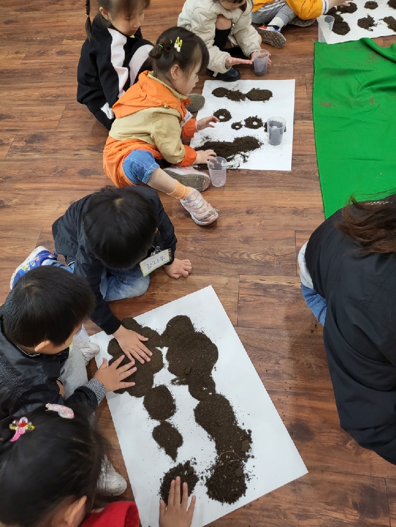* 비가 와서 실내 활동을 했어요 * 흙을 흔들어서 모형 만들기도 하고 나만의 자연물 열쇠고리도 만들어 보았어요. |