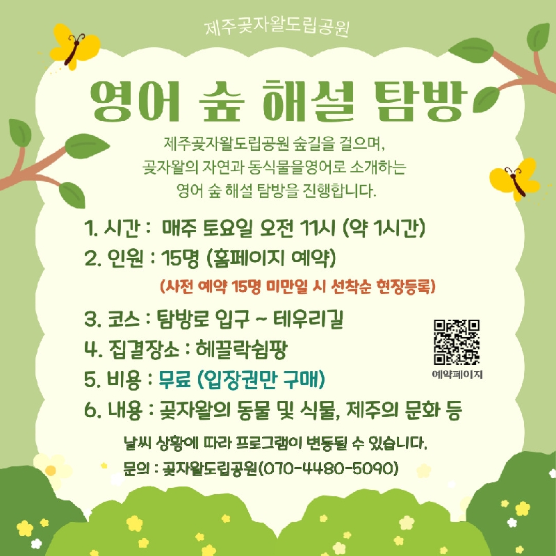 제주곶자왈도립공원 영어 숲해설탐방 운영 안내