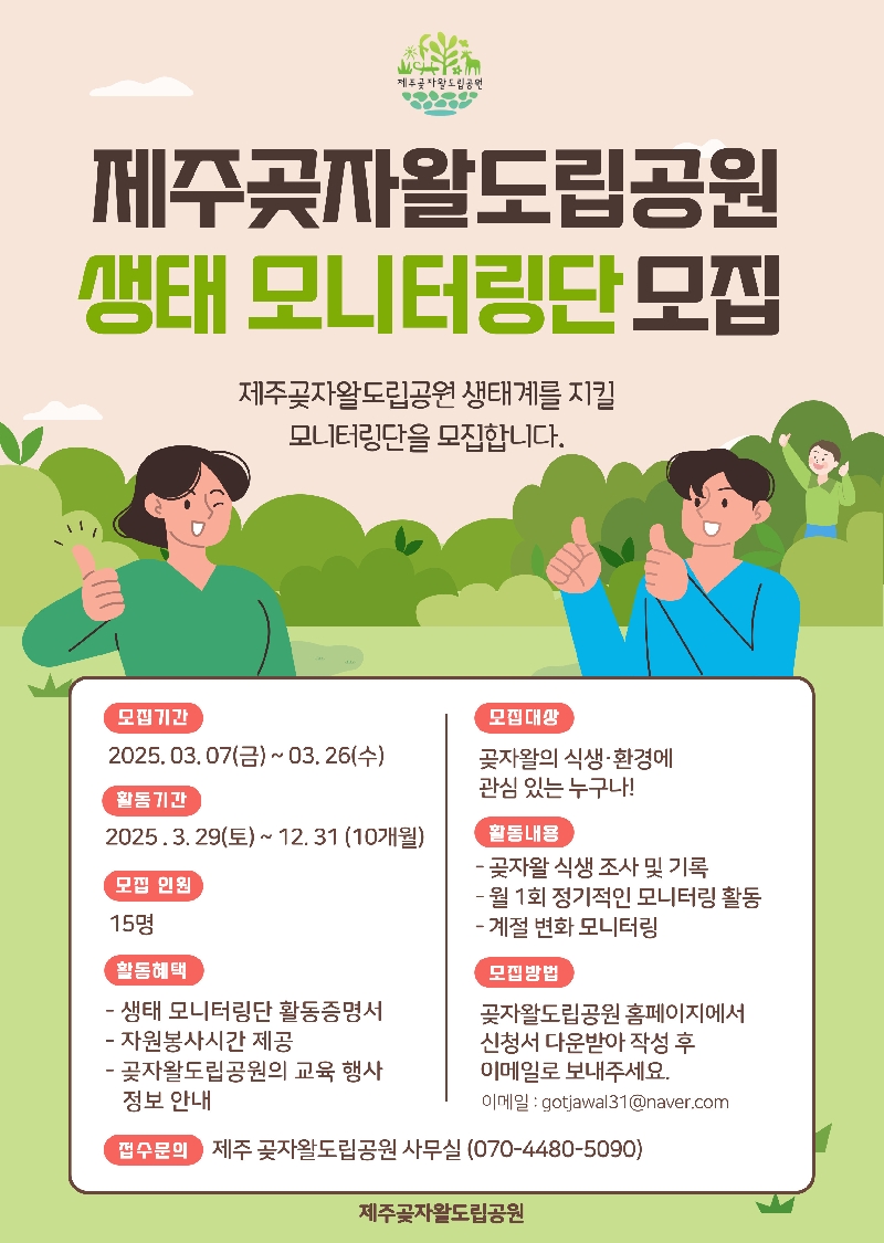 곶자왈도립공원 2025년 생태 모니터링단을 모집합니다!