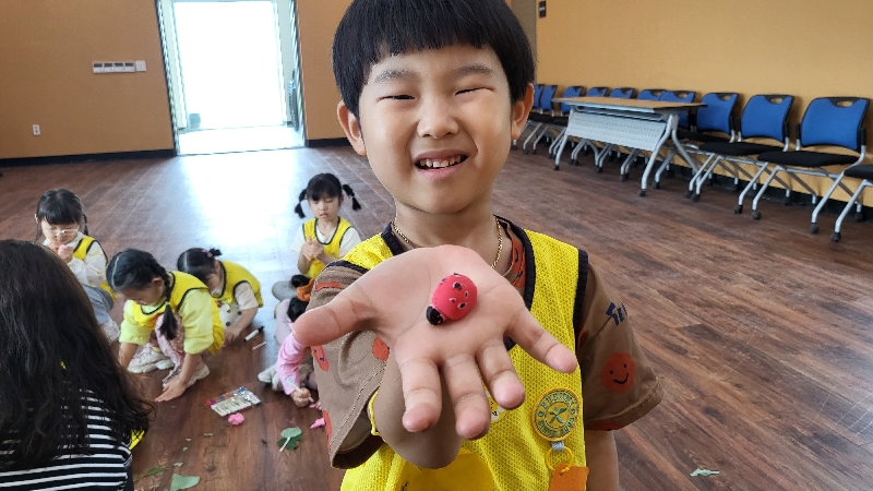 연일 비가 오는 날씨로 인해 생태학교 숲에 연약한 친구들 피부에 좋지 않은 해충들이 보이는 듯 하여 실내 프로그램으로 이루어졌다. 16명 친구들이 나뭇잎 펀칭 놀이도 하고 클레이로 숲속 친구들을 만들어 상황극을 하며 놀았다. 나무블럭으로 게임을 하며 마무리 하는 시간을 보내며 9월을 기다리기로 했다. 예의 바른 신화 친구들 안녕~~~ |