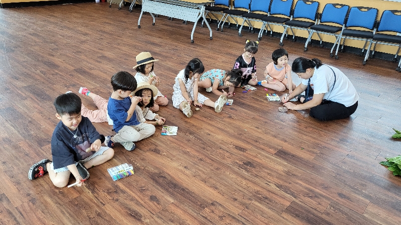 어린이집 친구들이 체험을 하러 오는 날은 다행히 비가 그치고 해가 쨍 해주는 마술이 있는듯 하다! 대정어린이집 잎새반 친구들이 저번달에 이어 7월도 찾아 주었다. 6월 체험이 너무 즐거워 원래 형아반 친구들이 와야하는 생태학교를 자신들이 양해를 구하고 왔다고 한다. 체험 도증 새소리 목걸이를 만들며 잎새반 친구들이 계속계속 오고 싶다고 표현해 체험 시간 동안 수업을 준비한 보람을 느꼈다. 열매반, 잎새반 친구들 모두 와도 좋아요~^^ |