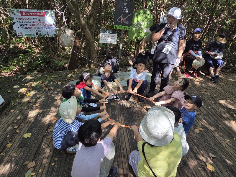 10월 가족과 함께하는 숲속놀이터가 열렸습니다. 제주곶자왈도립공원에 숲놀이를 하기 위해 가족들이 모였어요!