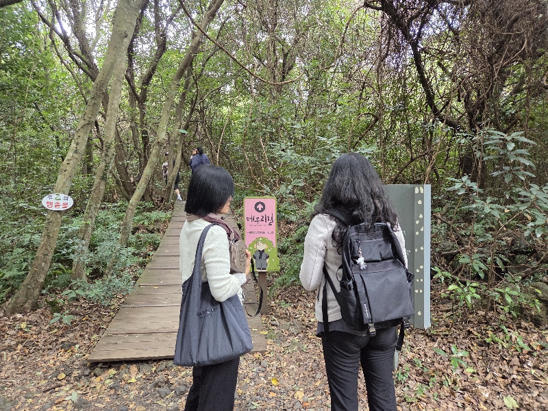 높고 푸른 가을 하늘 아래, 푸른 잎이 가득한 곶자왈에서 탐방을 시작했어요.