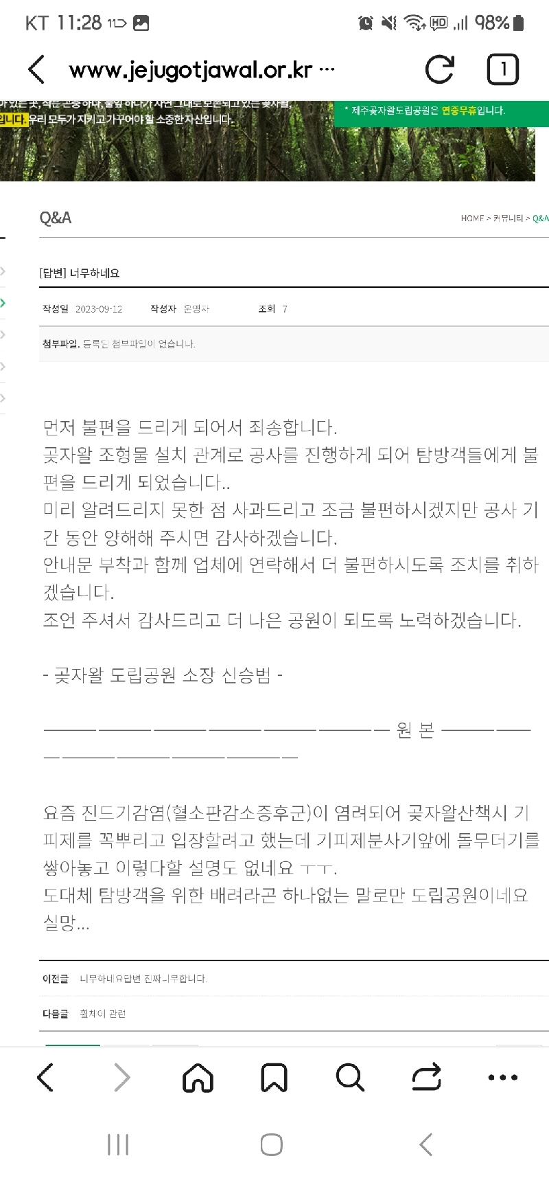 ※ 안전사고 예방 안내 탐방시 등산화, 운동화 착용 필수 등산화, 운동화 미착용 시 1코스만 탐방 허용