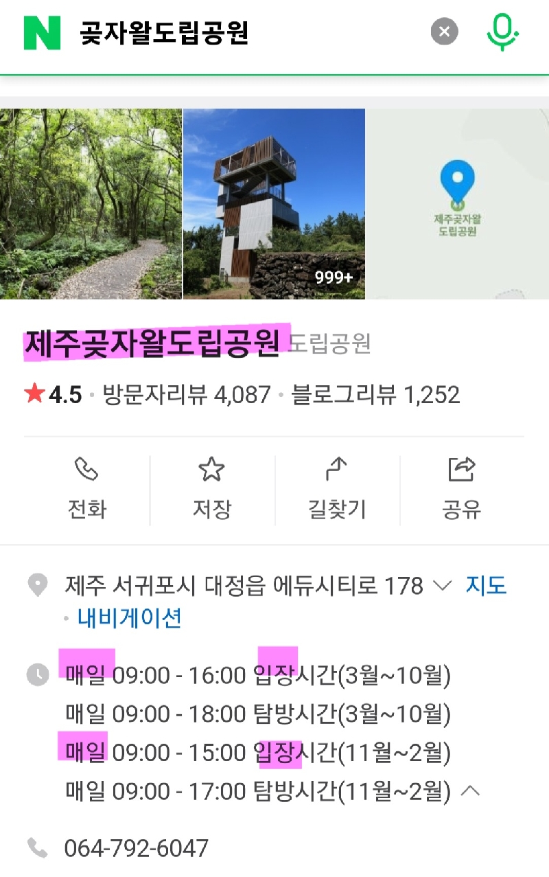 제주곶자왈도립공원은 연중무휴입니다.
