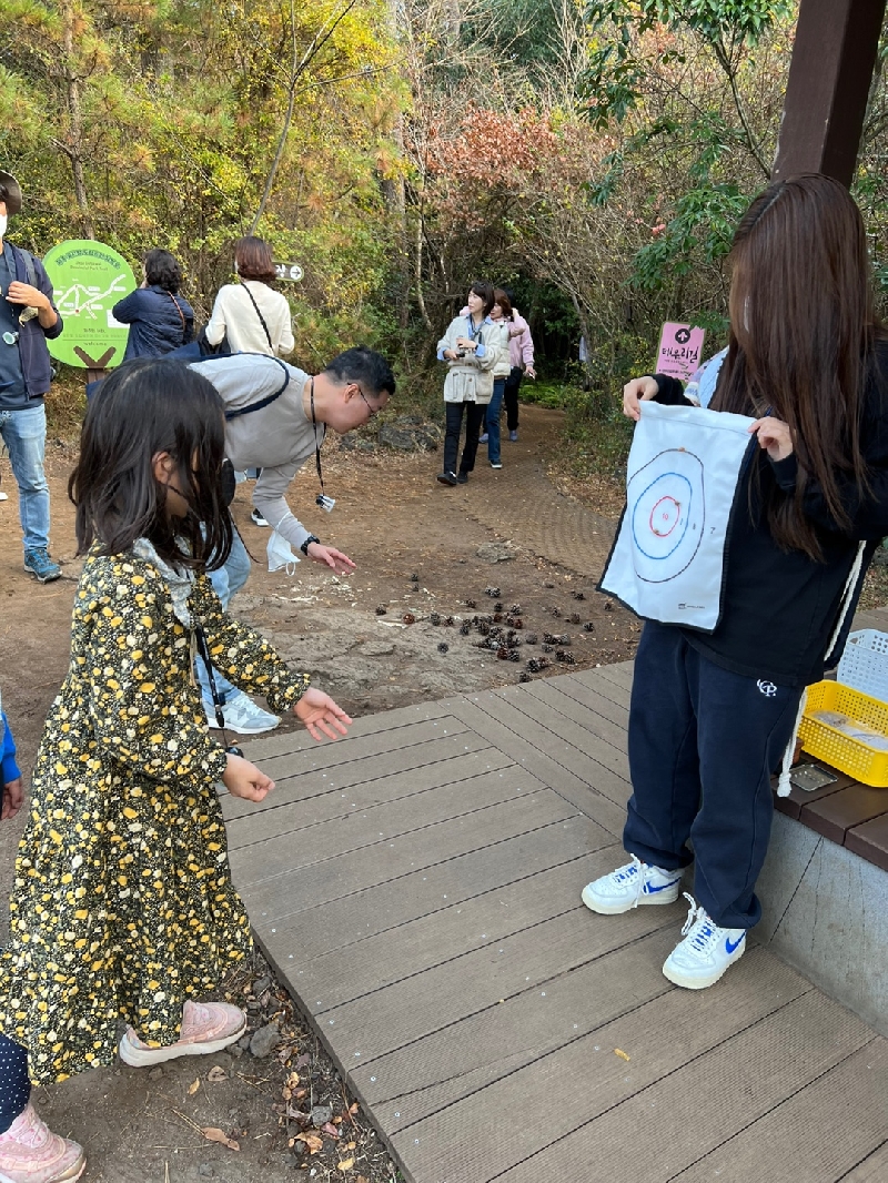 # 11월의 화창한 날 # 곶자왈이란? # 솔방울 던지기, 도꼬마리 과녁 맞히기, 전망대 도전 등 미션 수행 |