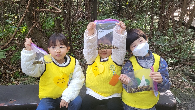 11월 셋째주에 신화친구들이 도립공원을 찾아주었어요~^^ 종가시나무 도토리를 주우며 큰 도토리, 작은 도토리의 모양, 색, 깍지를 관찰하며 새소리가 나는 테우리길을 산책했어요. 실제 직박구리 소리를 들은 후 버드콜을 만들어 새소리내기 게임을 했답니다. ^^ 착한 신화친구들~! 올해 너희들로 인해 위로가 되고 행복했단다~!!! |