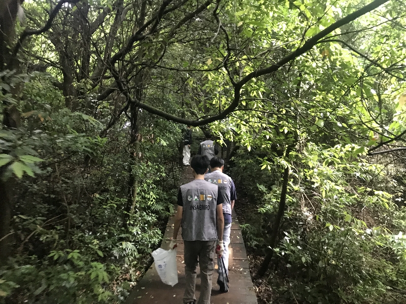 토요일 오전 곶자왈도립공원에 온새미로 친구들이 찾아왔어요. 세 팀으로 나뉘어 가시낭길의 안전표시끈을 교체하고, 탐방로와 전망대의 환경정화를 했답니다.