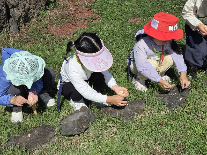 무더운 여름이 지나고, 곶자왈에도 가을이 찾아왔어요. 가을을 맞아 신화월드 어린이집 친구들이 신평생태체험학교에 왔답니다.