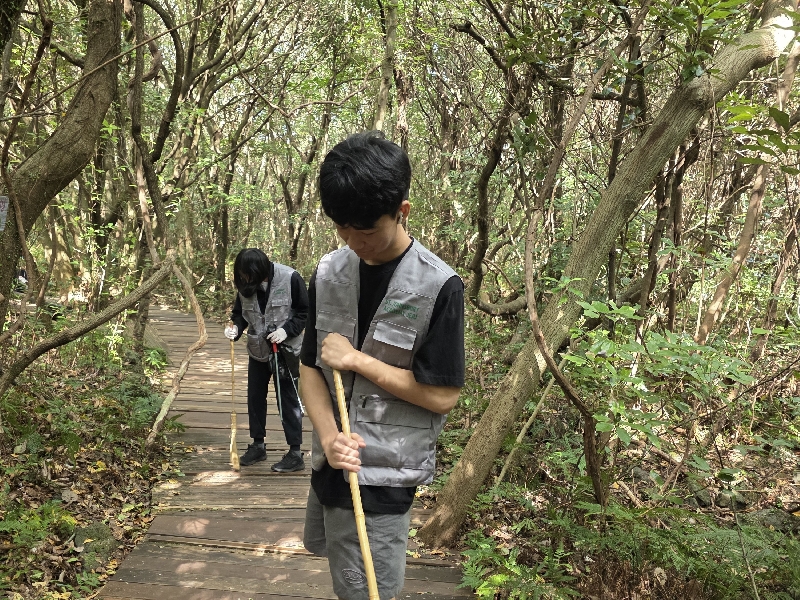 10월, 새 학기가 시작되고 온새미로 친구들이 봉사활동을 하러 제주곶자왈도립공원에 왔어요.